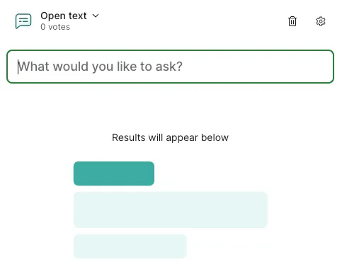 - Survey - Create a survey combining multiple questions (unlike the above 6 types, participants answer multiple questions collectively as one set).