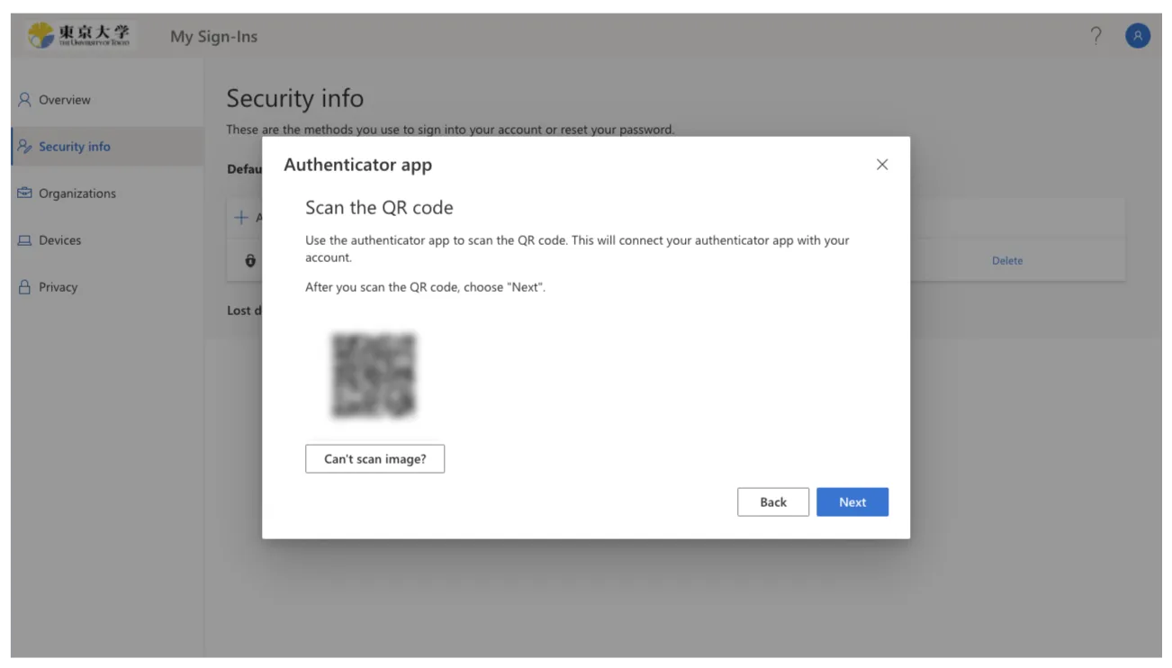 You need to display the QR code to register the Yubico Authenticator application as a verification method for the multi-factor authentication of UTokyo Accounts. Since the method for displaying the QR code differs depending on the situations, details are explained separately.