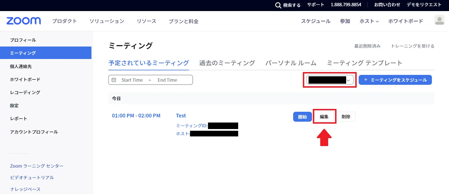 既存のミーティングを編集する場合の手順